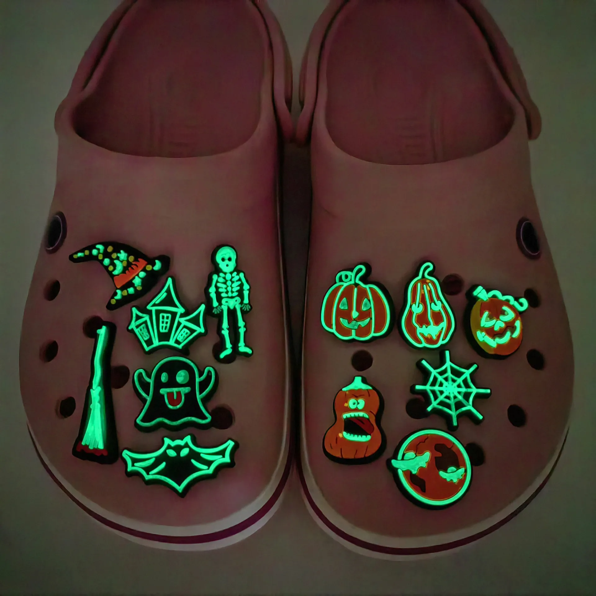 Welcome to purchase croc shoe charms wholesale, ideal for retailers and shoe accessory brands. Made of premium rubber, these glow-in-the-dark clog charms are perfect for Halloween collections. Add a spooky touch to your Crocs with Halloween pumpkin ghost skeleton bat luminescent Croc Shoe Charms!
