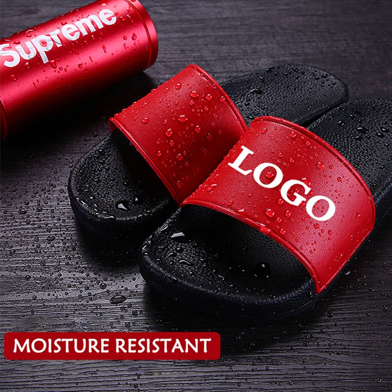Color Collision Fashion Design: These custom logo slippers adopt trendy color collision elements, red, white, and black, with each other, visually appealing, suitable for a variety of casual occasions to wear.