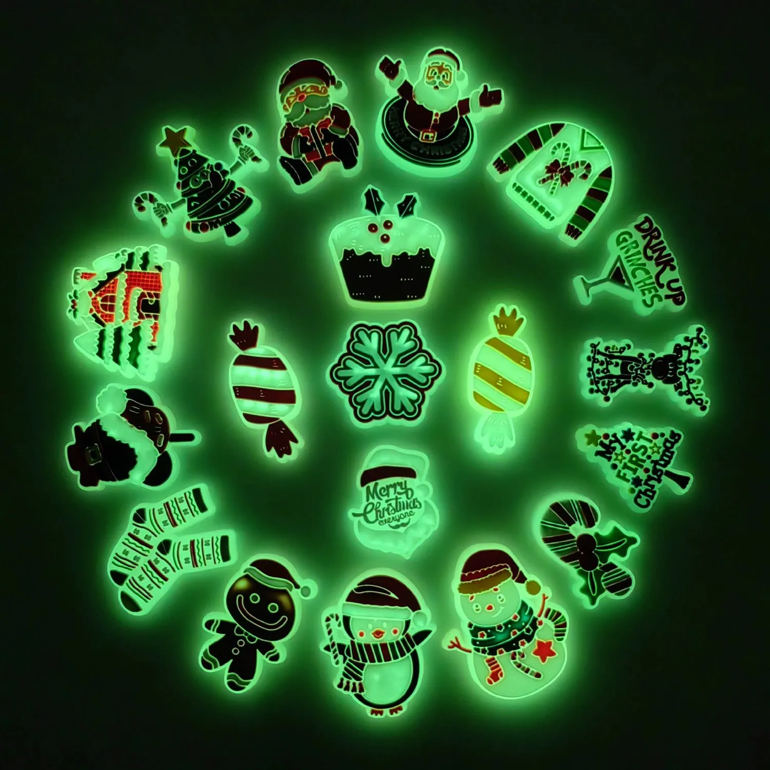 Christmas Theme: The nightglowing material in these noctilucent customized croc charms is available in different festive themes, such as Santa Claus, snowflakes, reindeer, and Christmas trees, to provide your shoes with a holiday appearance.